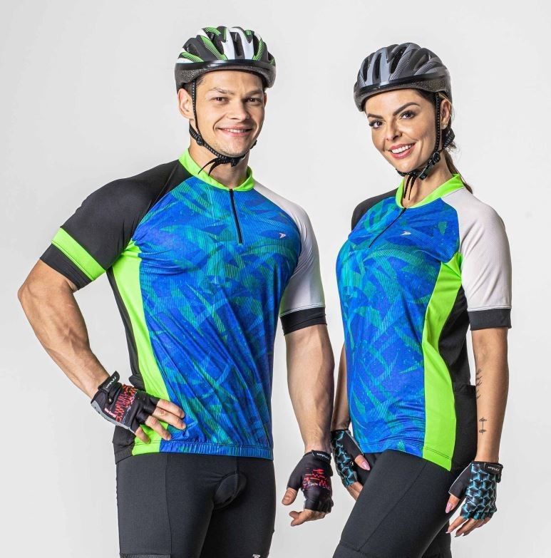 - Com design inovador, cores vibrantes e recorte ergonômico, a camisa ciclista Electric é é confeccionada em tecido estampado e elástico na parte frontal e tecido liso Dry que ajuda a manter a temperatura corporal, deixando o corpo fresco e seco por muito mais tempo, devido à sua capacidade de transportar o suor para a parte externa do tecido.
