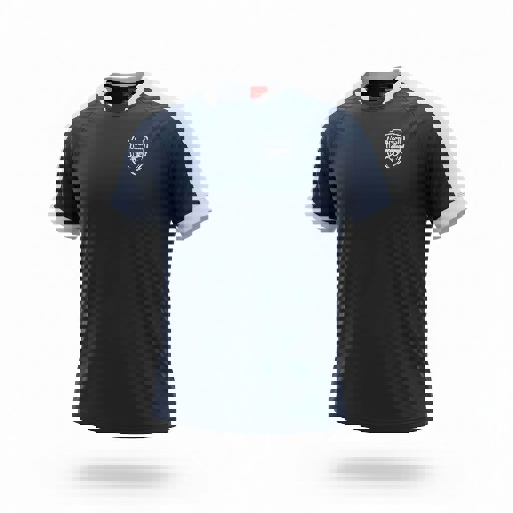 Feita em poliéster, tem design marinho com detalhes em branco e escudo do clube em destaque.