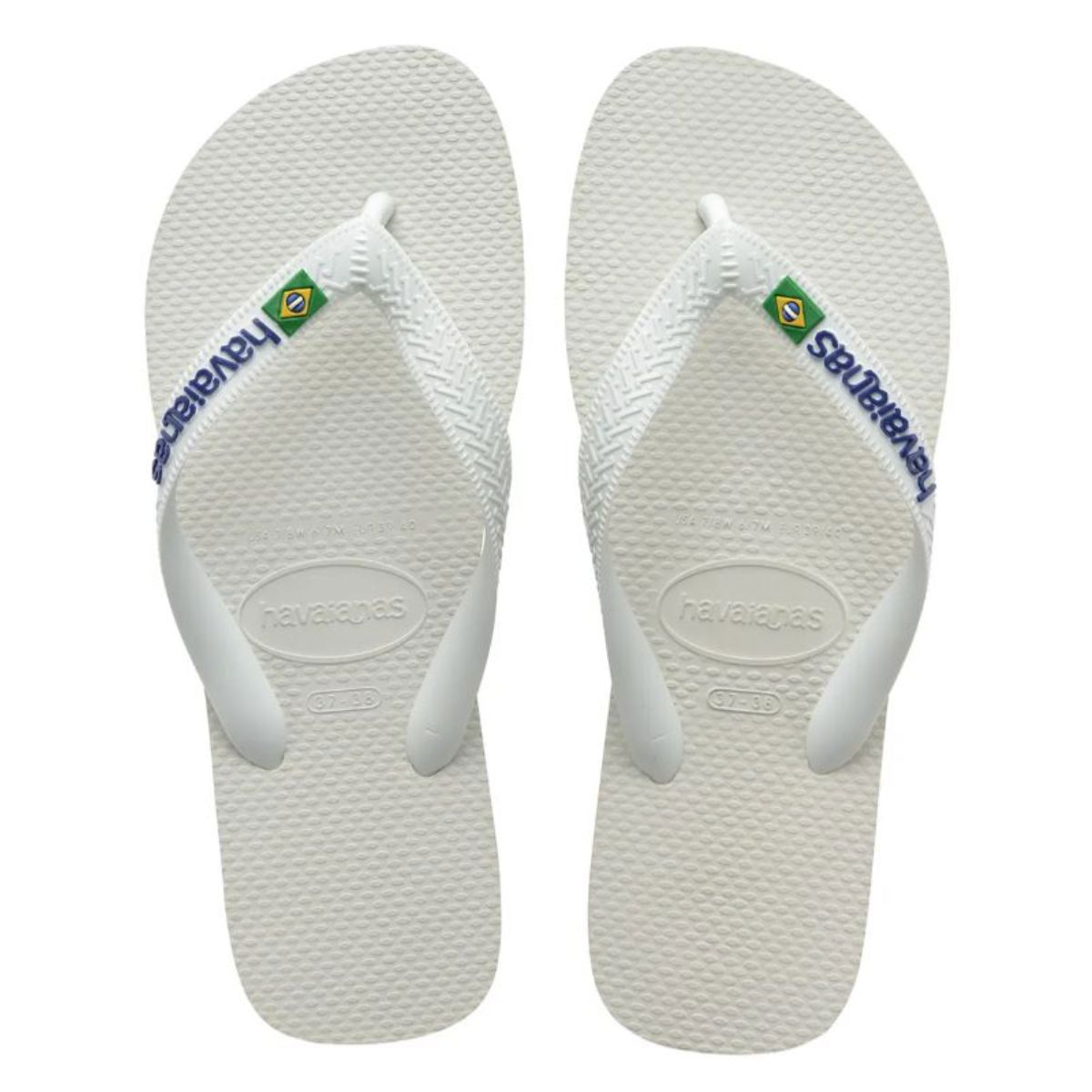 Chinelos feitos de solas de borracha flexíveis, resistentes e macias, apresenta cores vivas com um logotipo de baixo relevo destacado e bandeira do Brasil nas tiras.
